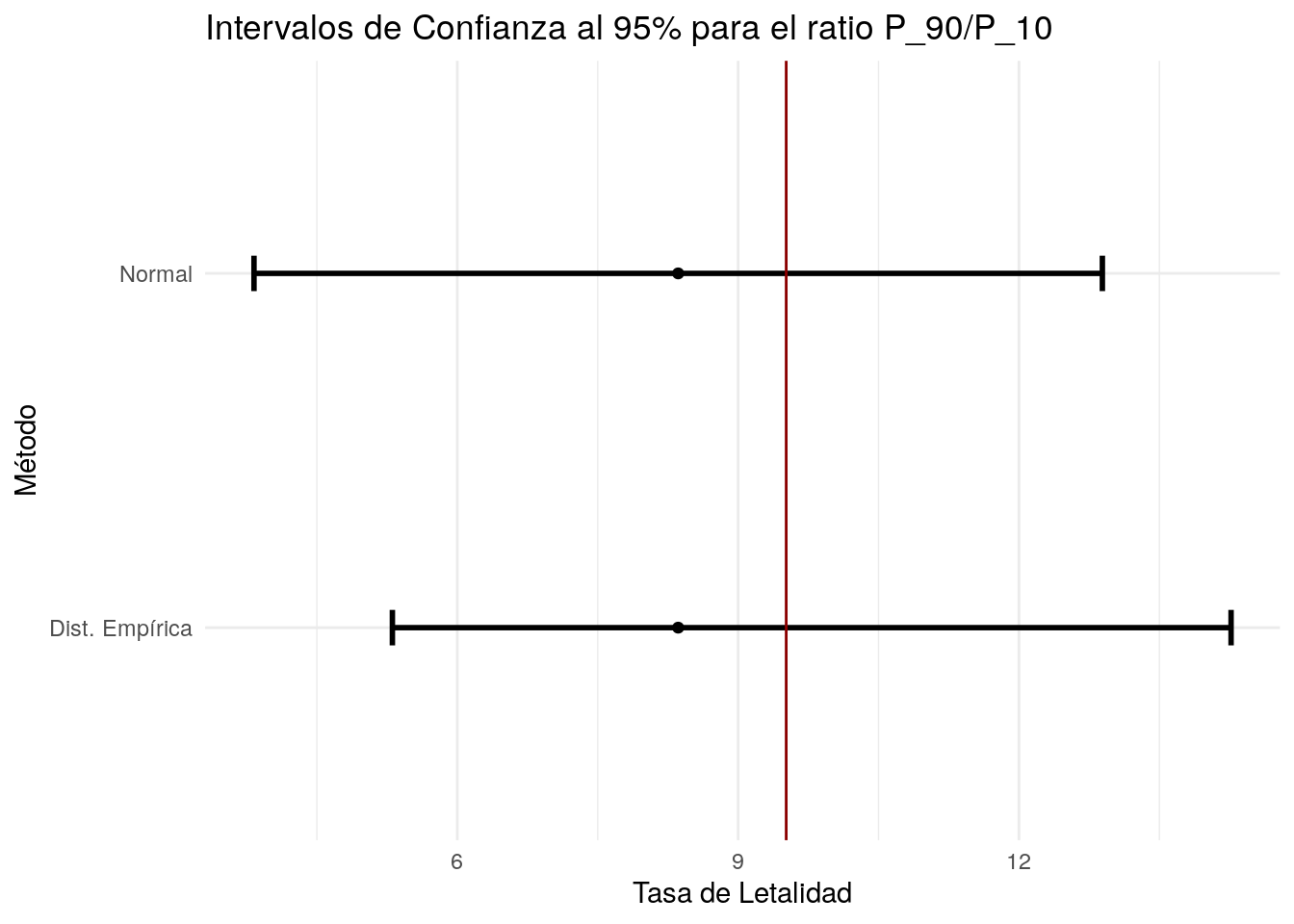 title = "Intervalos de Confianza al 95% para el ratio P_90/P_10") +