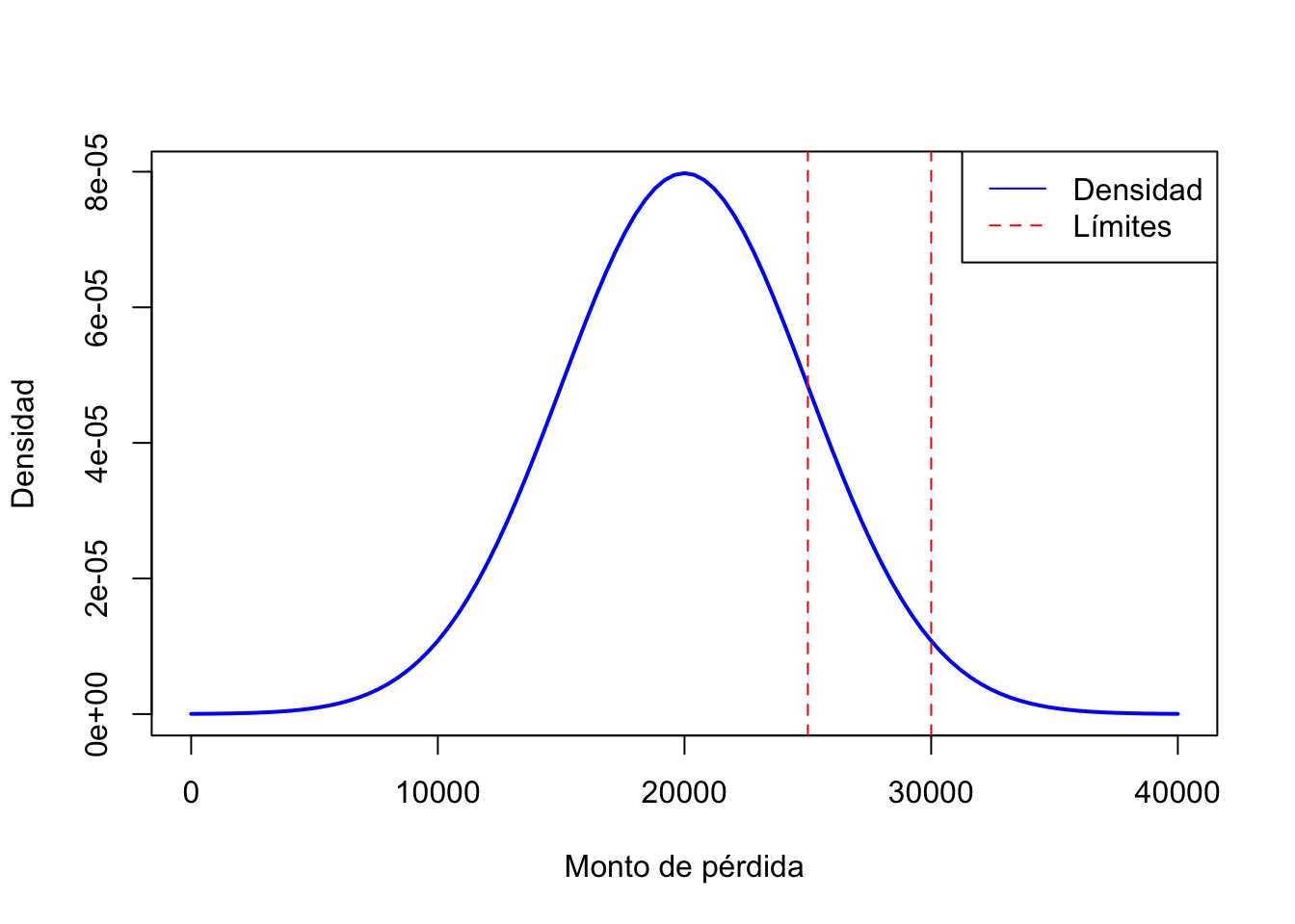 Una base de datos de eventos muestra que las pérdidas siguen una distribución normal con media $20,000 y desviación estándar $5,000.