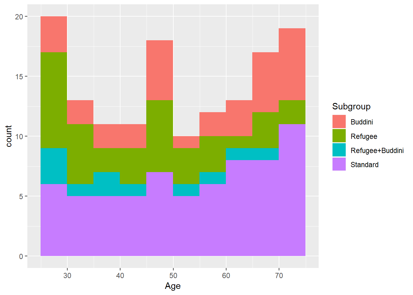 ggplot(population, aes(x = Age, fill=Subgroup)) +
