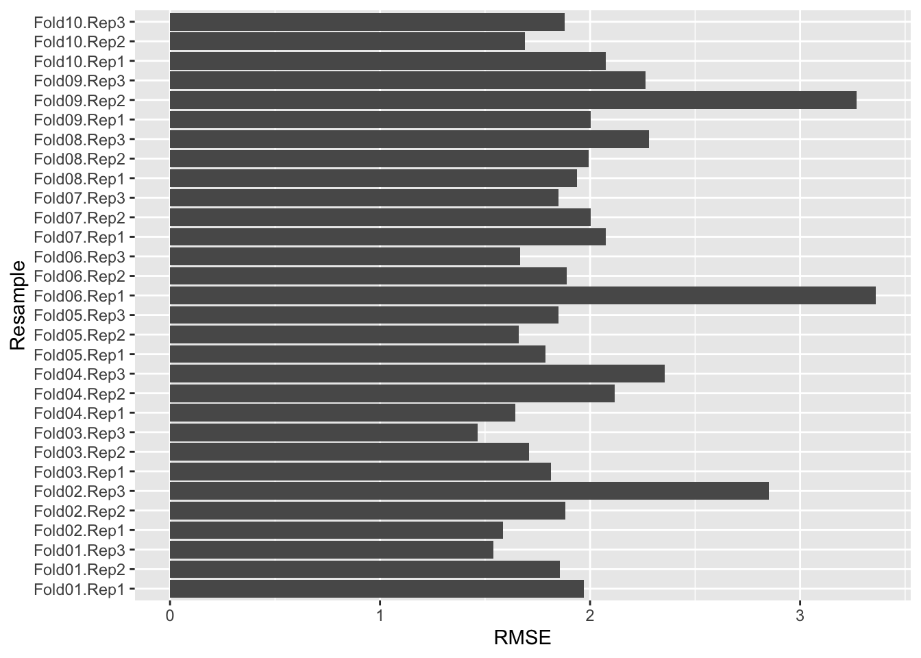 metric = "RMSE")## Training for 10% (n = 15)