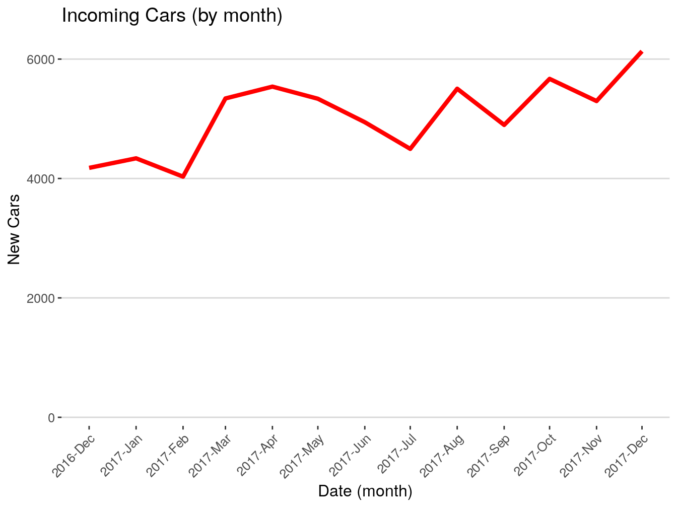 Now, we can find the average age of our vehicles by month.