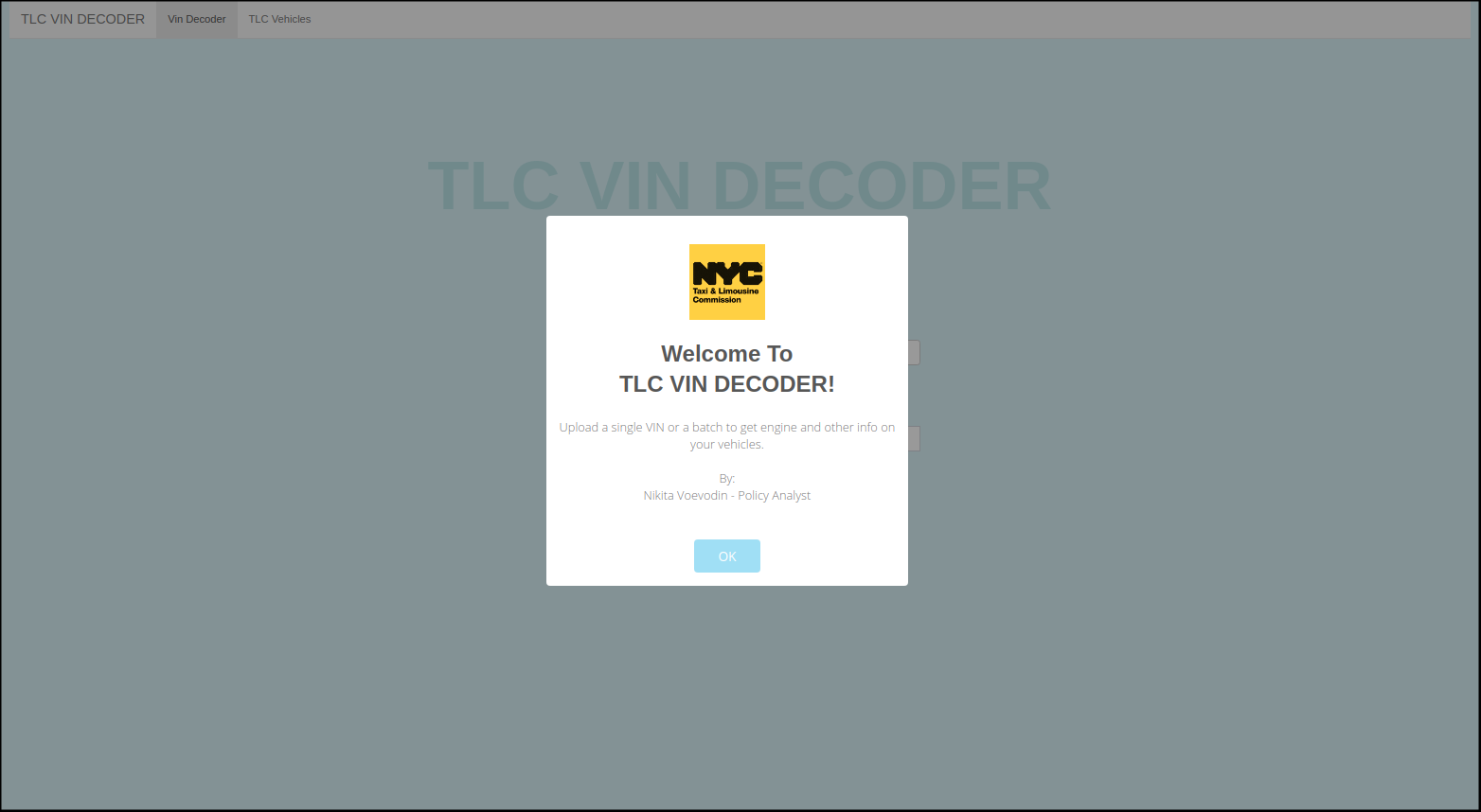The decoder is a utility app that utilizes the NHTSA API to give you a lot of useful information about either a single vehicle or a list of vehicles that you pass into it. It is used by the Taxi & Limousine Commission of New York City to keep track of electric vehicles, for example.