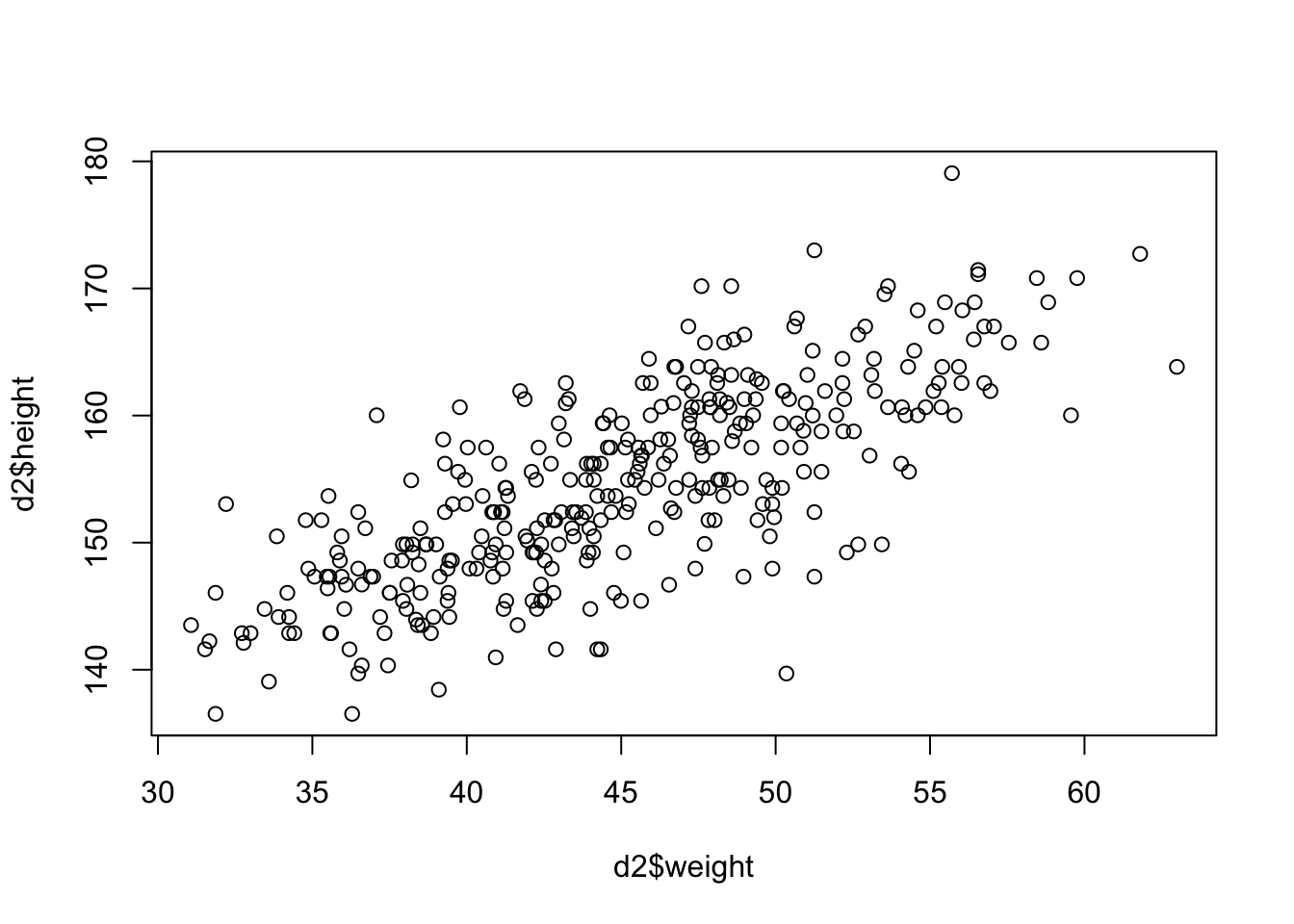 d <- Howell1Now we can see the new data frame
