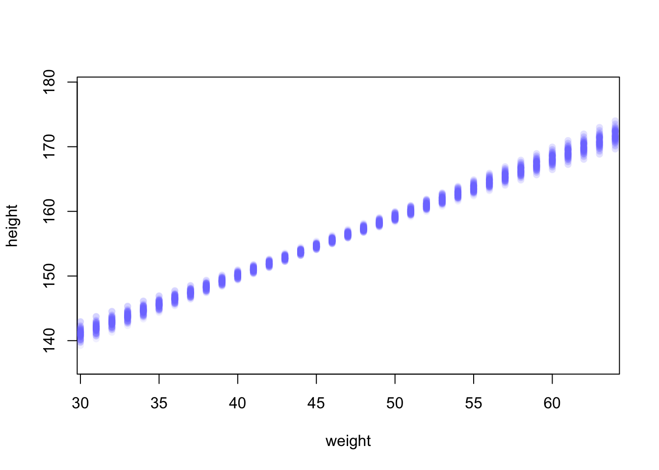 points(x = d$weight_s, y = d$height, col = col.alpha(rangi2, 0.5))