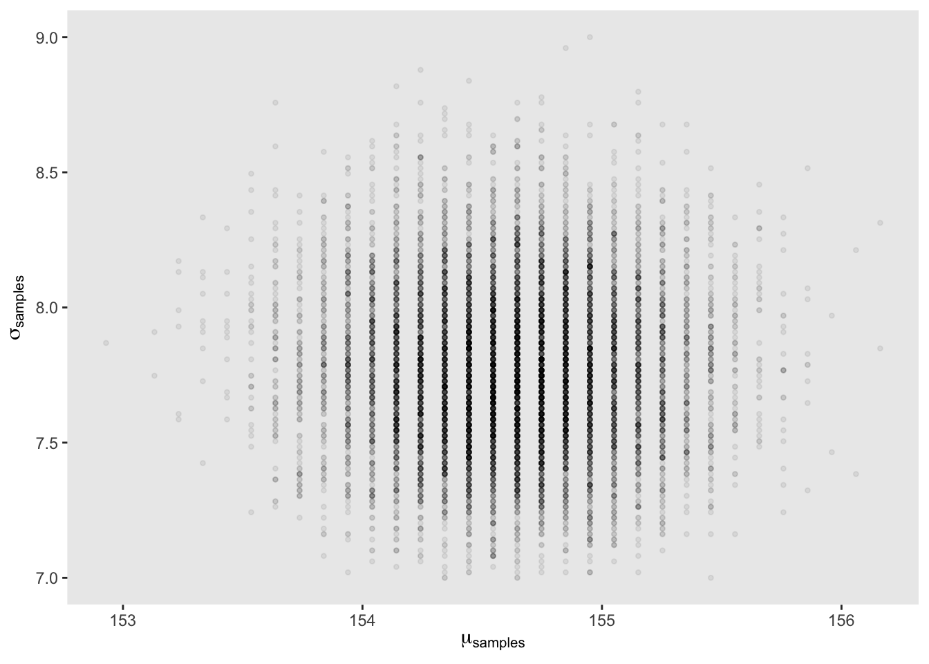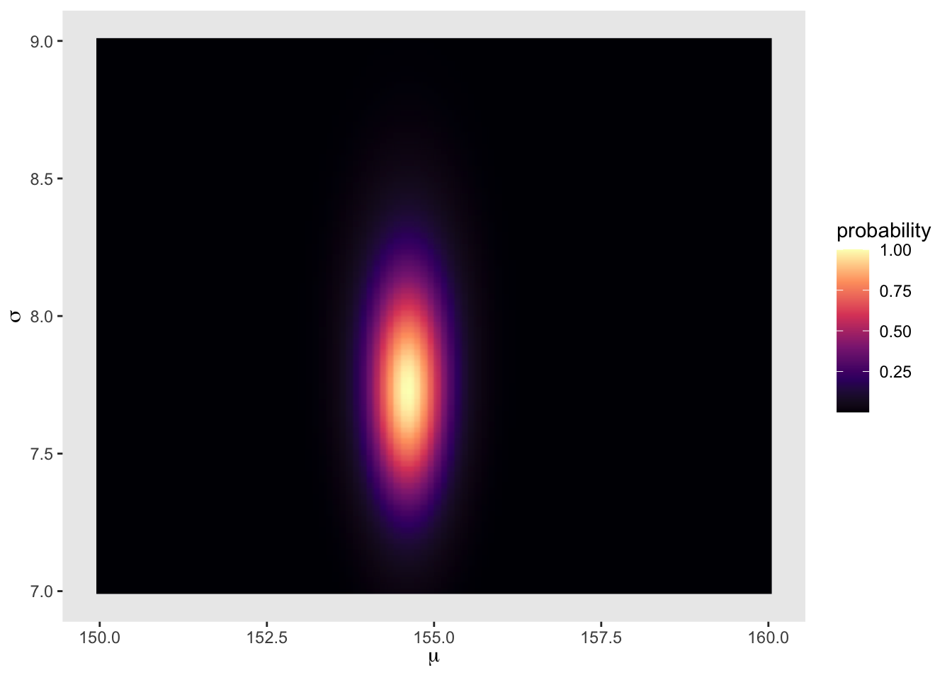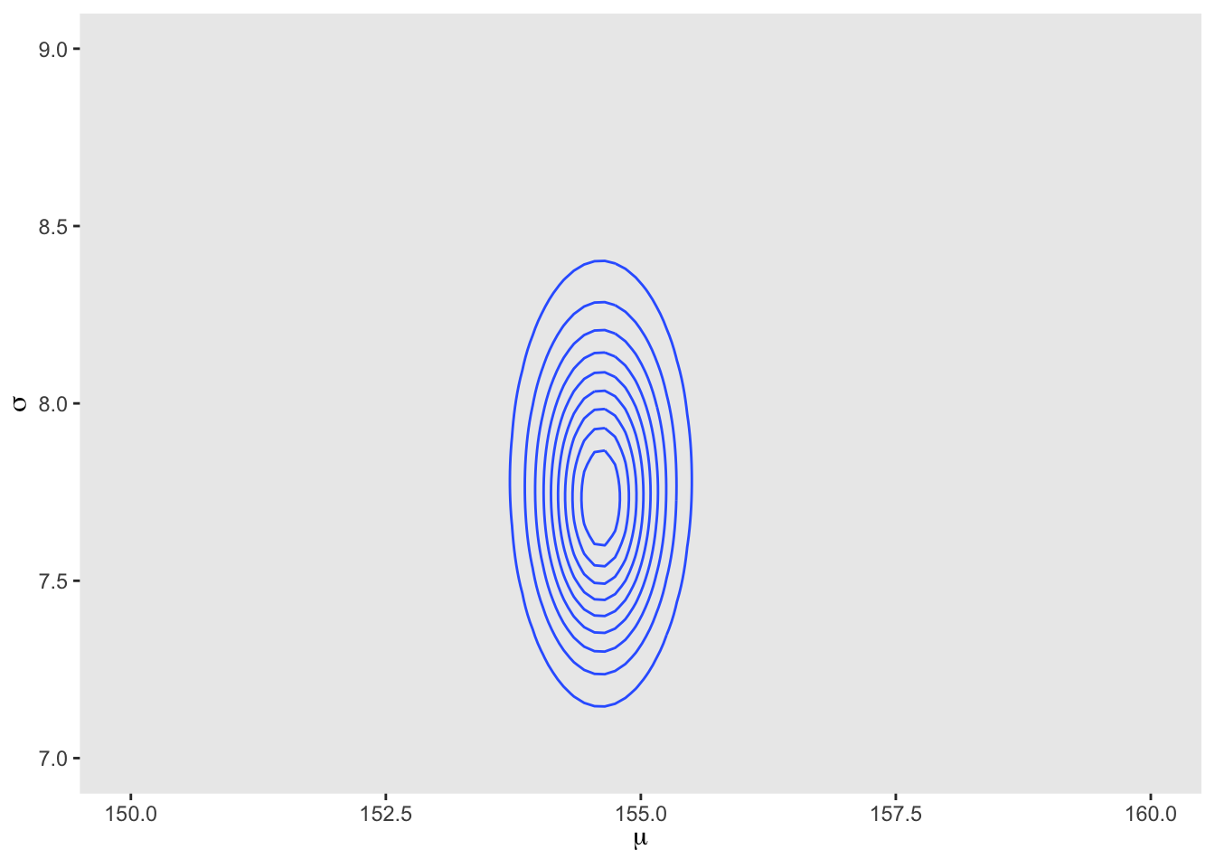 \[\begin{equation} \mu ~ \text{Normal}(178, 20) \sigma ~ \text{Uniform}(0, 50) \end{equation}\]