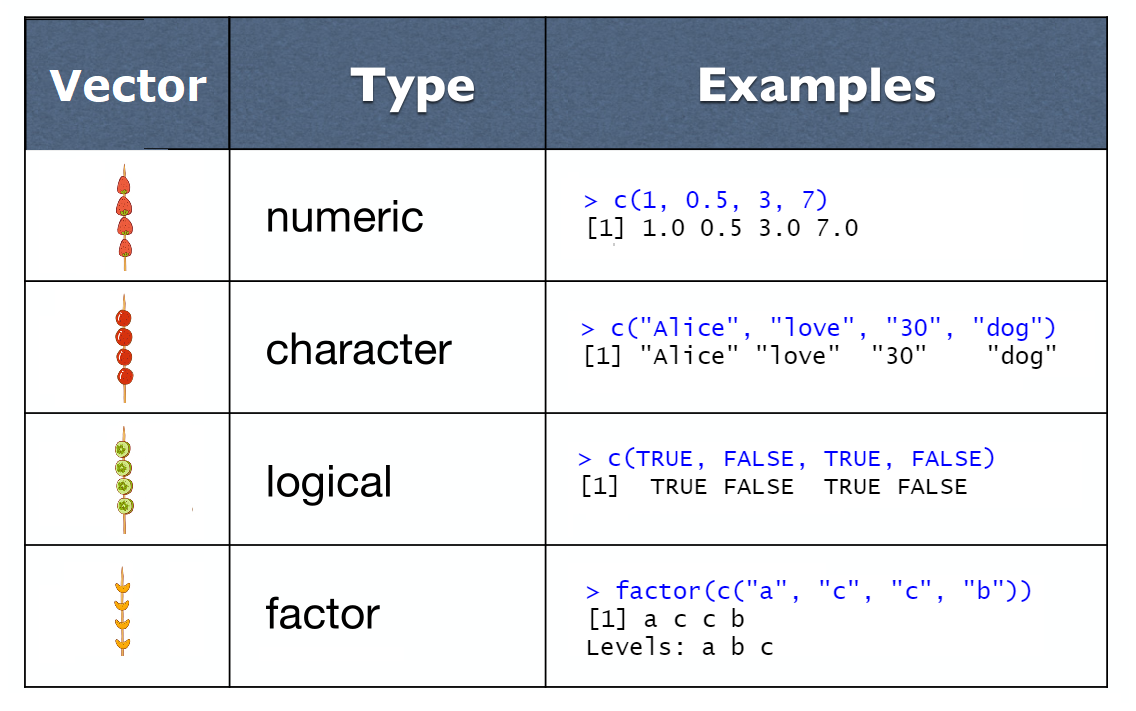 x <- c(1L, 5L, 2L, 3L) # 整数型