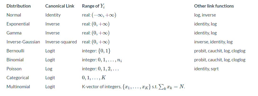响应变量的概率分布(Normal, Binomial, Poisson, Categorical, Multinomial, Poisson, Beta)