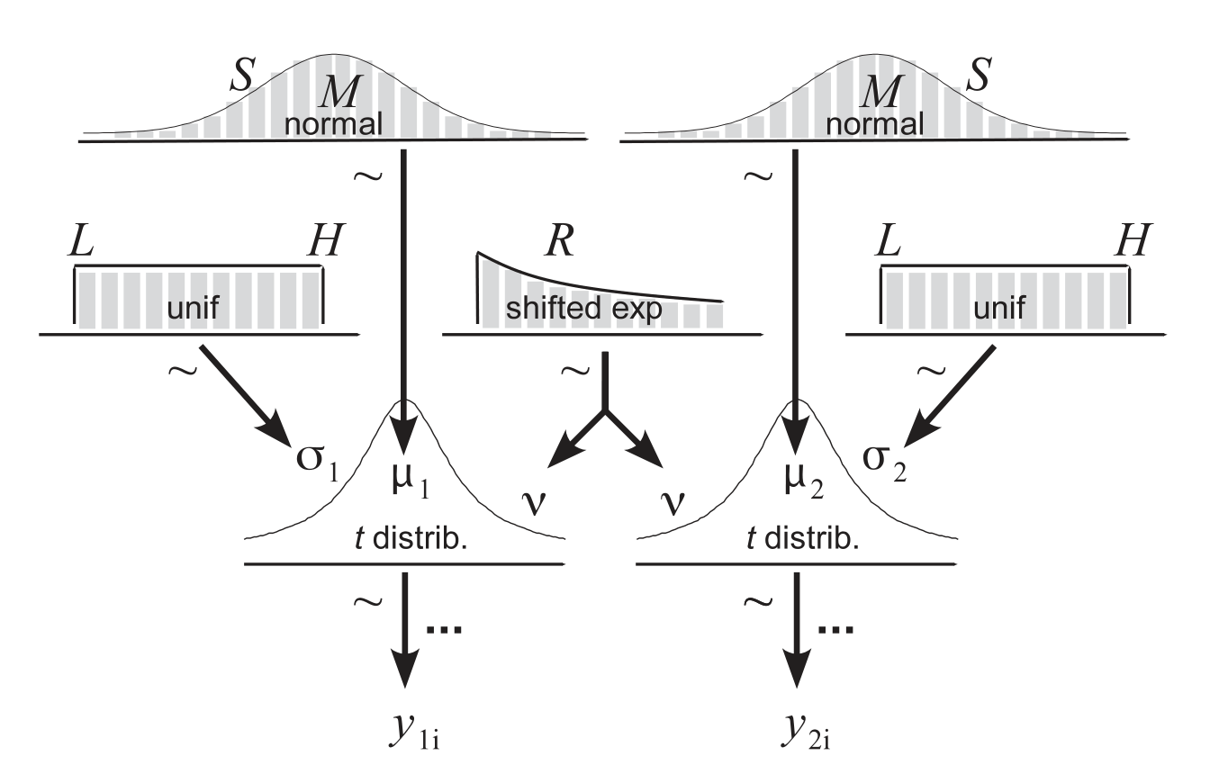 y[n] ~ student_t(nu, mu[group_id[n]], sigma[group_id[n]]);