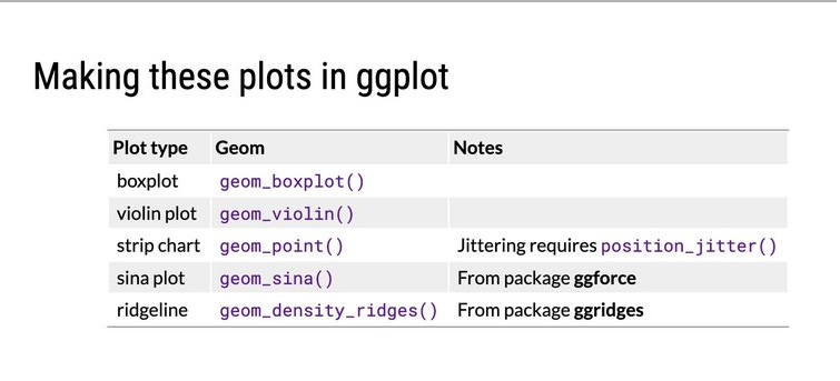 - 箱线图能用的地方小提琴图都能用,而且小提琴图可以很好的展示bimodal data的情况(箱线图做不到)