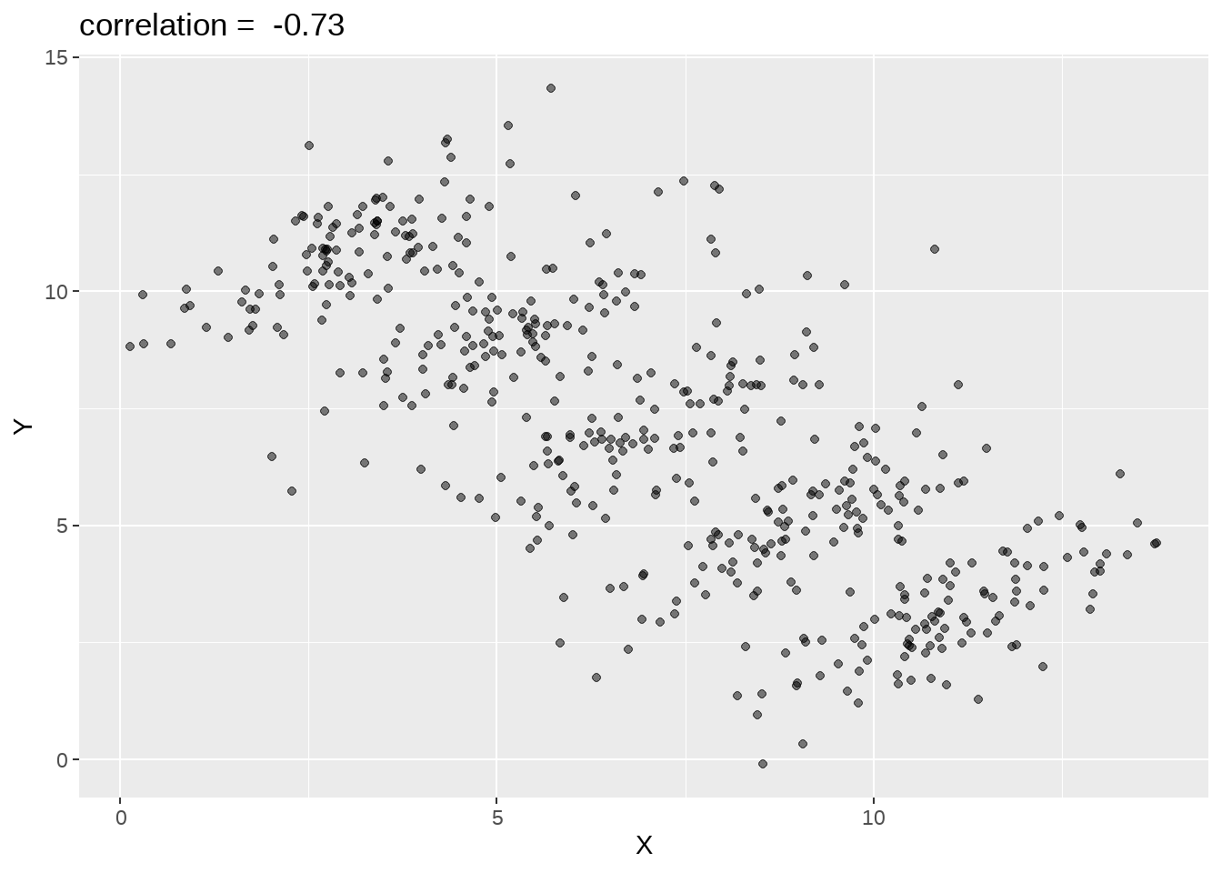 另一个有趣的例子就是辛普森悖论(Simpson’s Paradox)。比如我们想研究下,学习时间和考试成绩的关联。结果发现两者呈负相关性,即补课时间越长,考试成绩反而越差(下图横坐标是学习时间,纵坐标是考试成绩),很明显这个结果有违生活常识。