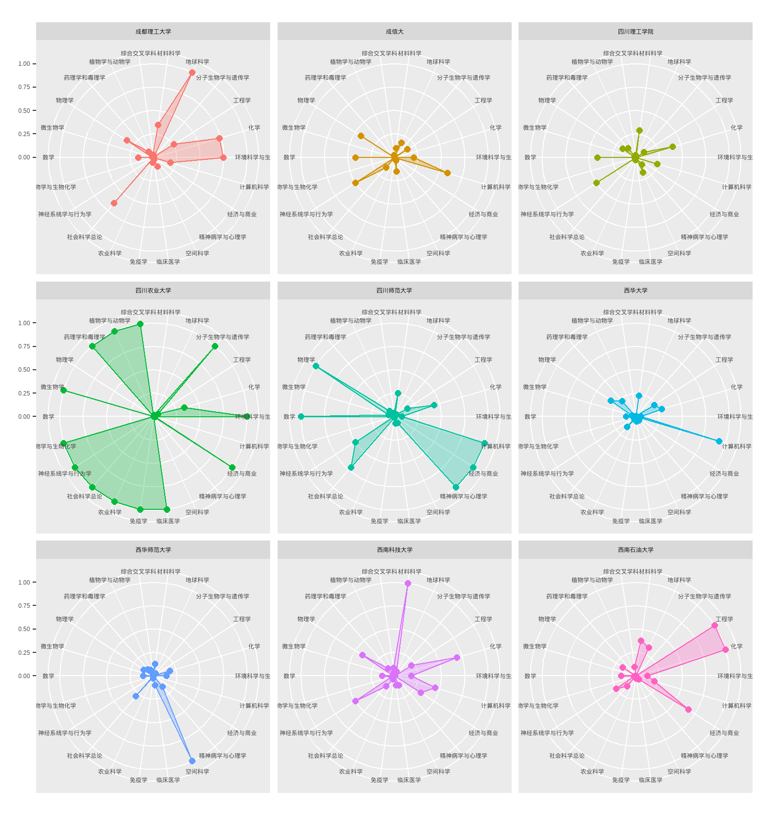 建立数据集有很大的好处,比如我们可以很方便的对比四川各高校的科研情况