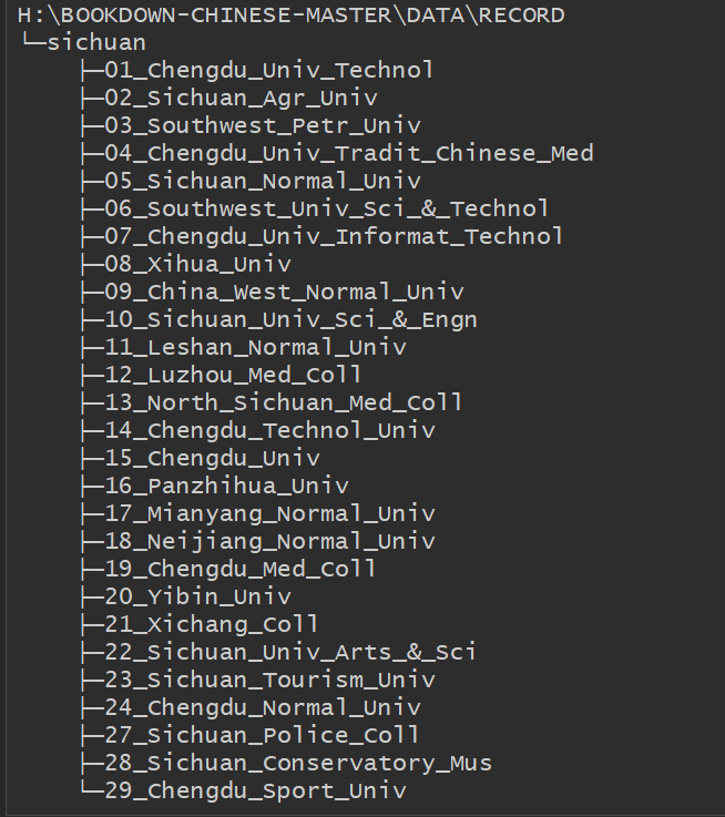 由于wos网站限制每次只能下载500条记录,因此每个学校的题录文件(一个文件夹)存放不止一个txt文件。具体文件结构如下: