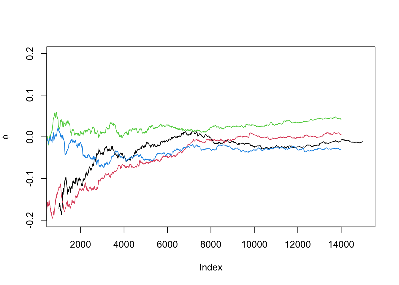 plot((b+1):n, phi[i, (b+1):n], ylim = c(-0.2, 0.2),