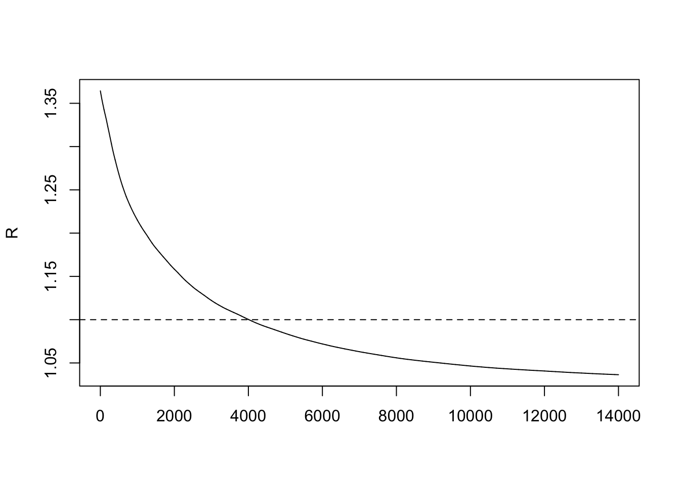 rhat[j] <- Gelman.Rubin(phi[, 1:j])