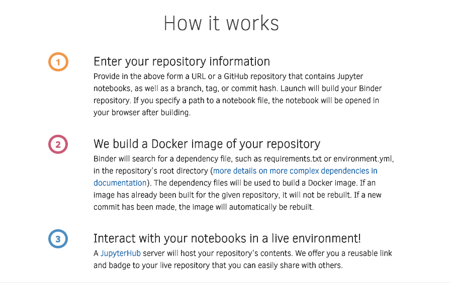 它调用的,是另外的一个工具,叫做 repo2docker(https://github.com/jupyter/repo2docker) 。