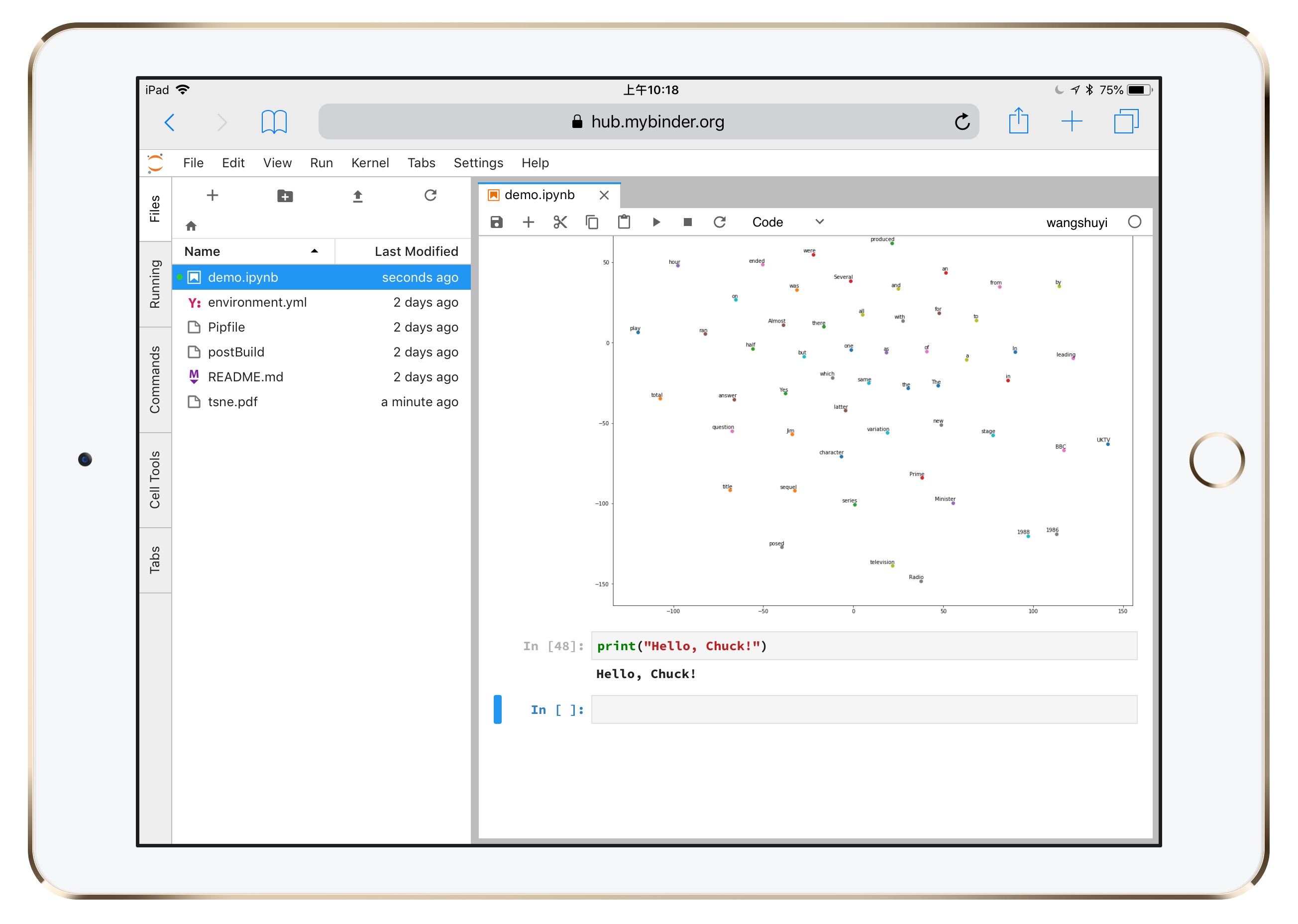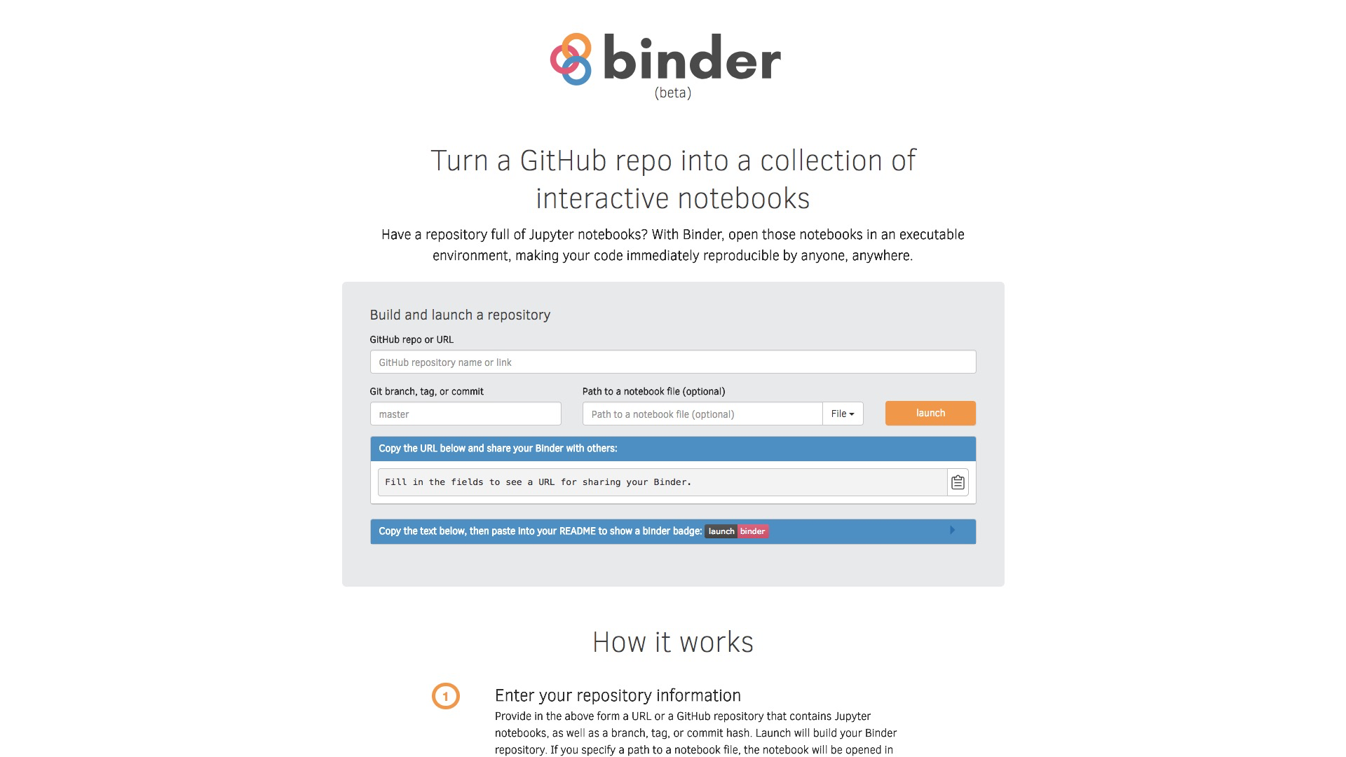 我们需要用到一款工具,叫做 mybinder 。它可以帮助我们,把 github 上的某个代码仓库(repo),转换成为一个可运行的环境。许许多多的人同时在线使用,也不相冲突。