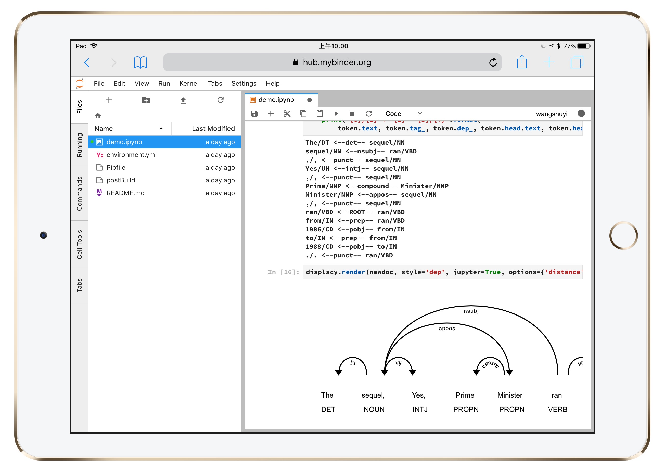 - 为了分析语义,我们需要预训练的模型,这需要 mybinder 为我们下载好。