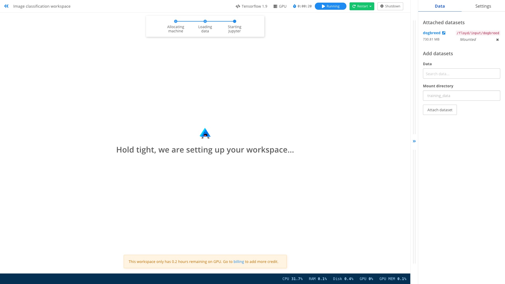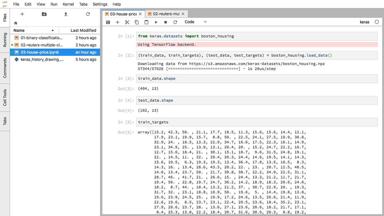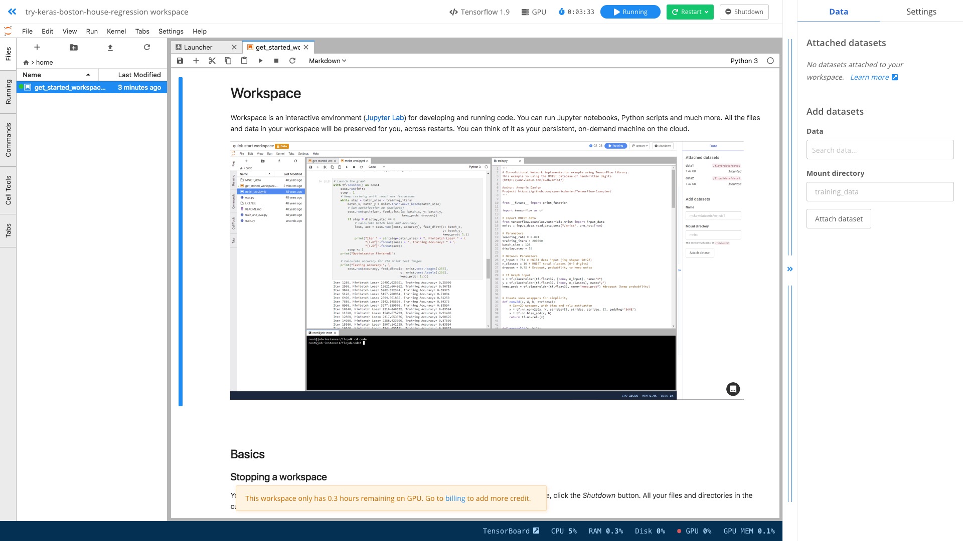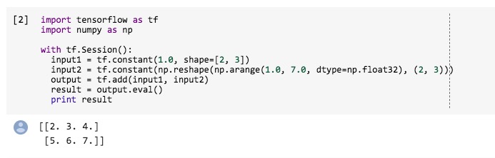 不仅是tensorflow,许多常用的数据分析工具包,例如numpy, matplotlib都默认安装好了。