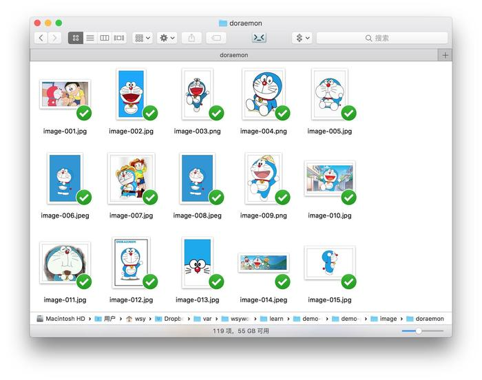 image目录内容,就是你之前在《如何用Python和深度神经网络寻找近似图片?》(7.3)一文中已经见过的哆啦a梦和瓦力的图片。