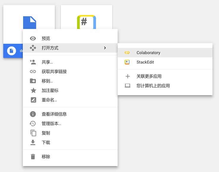 在demo_python_image_classification.ipynb文件上单击鼠标右键。选择打开方式为Colaboratory。