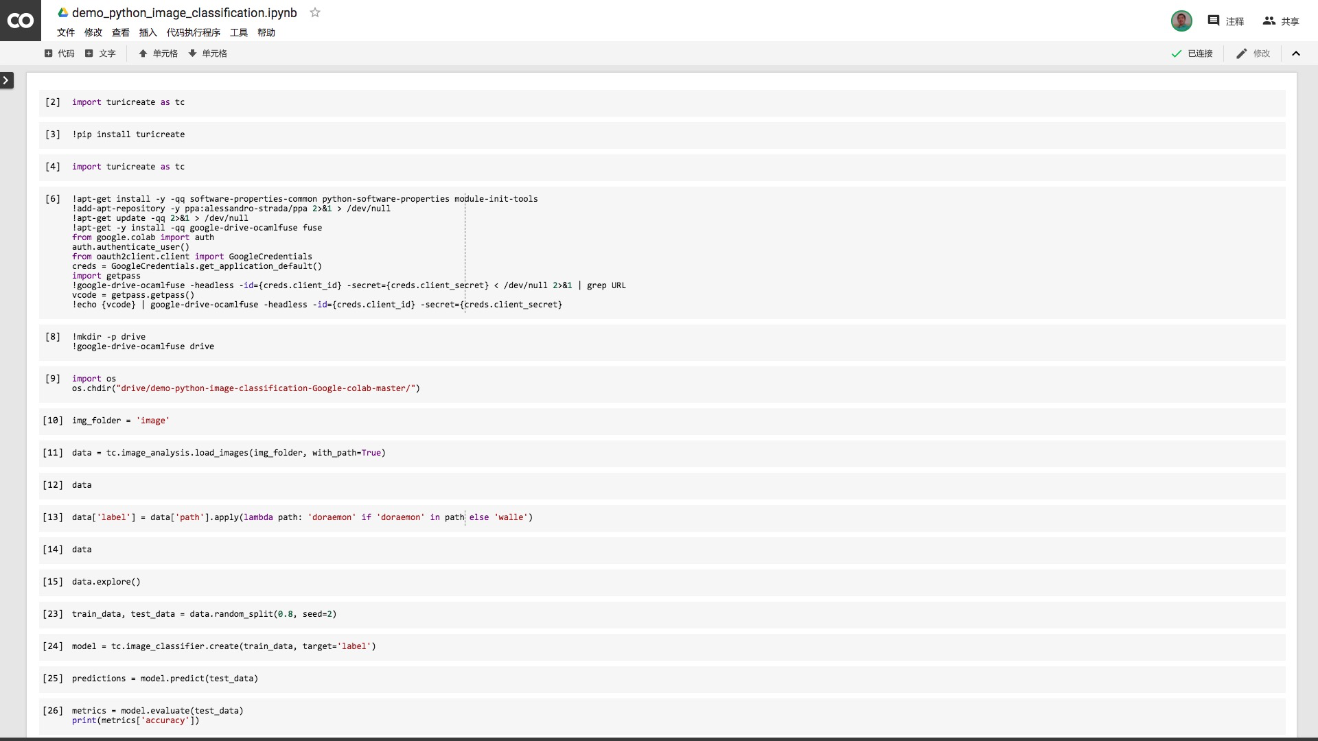 下面我为你展示如何用Colab运行TuriCreate,进行深度学习。