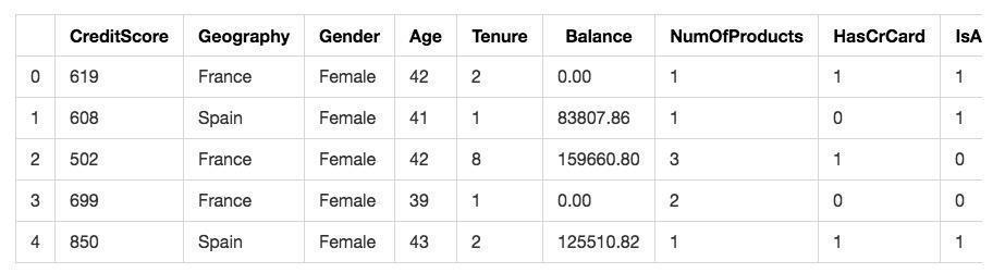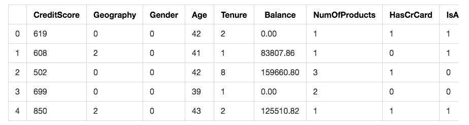 显然其中的Geography和Gender两项数据都不符合要求。它们都是分类数据。我们需要做转换,把它们变成数值。