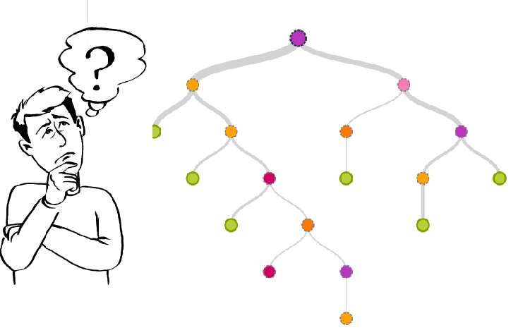 做决策的时候,你需要从最上面的节点出发。在每一个分支上,都有一个判断条件。满足条件,往左走;不满足,向右走。一旦走到了树的边缘,一项决策就完成了。