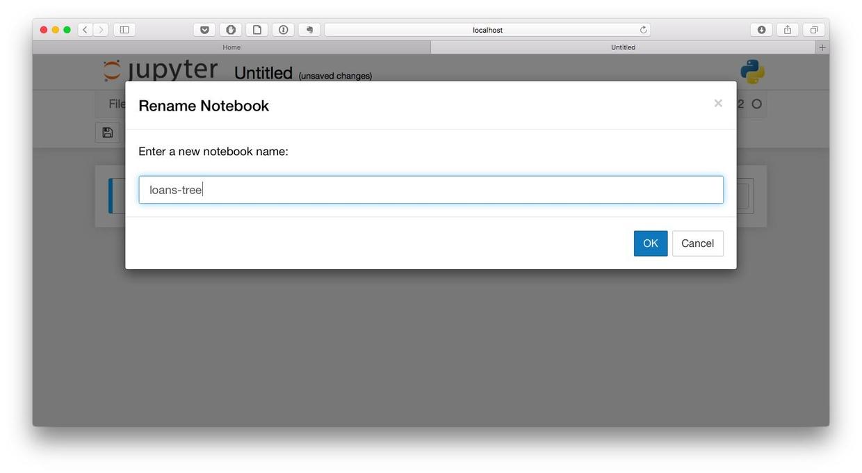 首先,我们新建一个Python 2笔记本,起名叫做loans-tree。