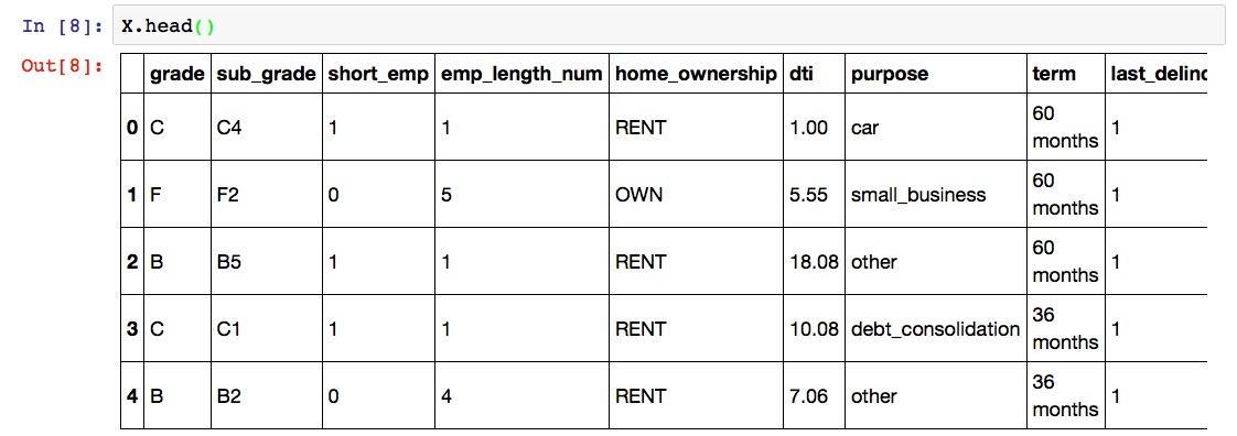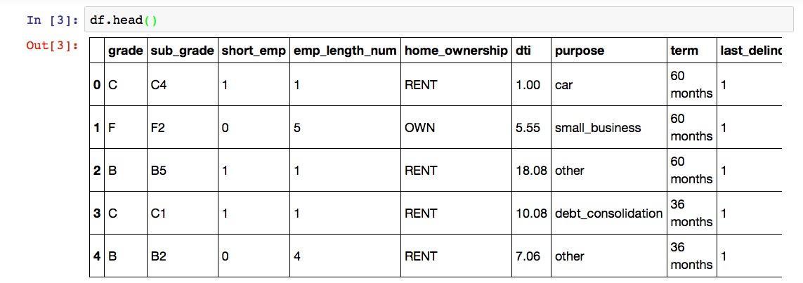 然后我们把loans.csv里面的内容全部读取出来,存入到一个叫做df的变量里面。