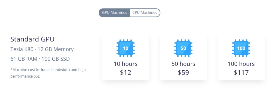 《如何用云端 GPU 为你的 Python 深度学习加速?》(8.2)提到的 FloydHub,租赁一个小时,大概需要1美元左右。注册账号就赠送你2个小时;