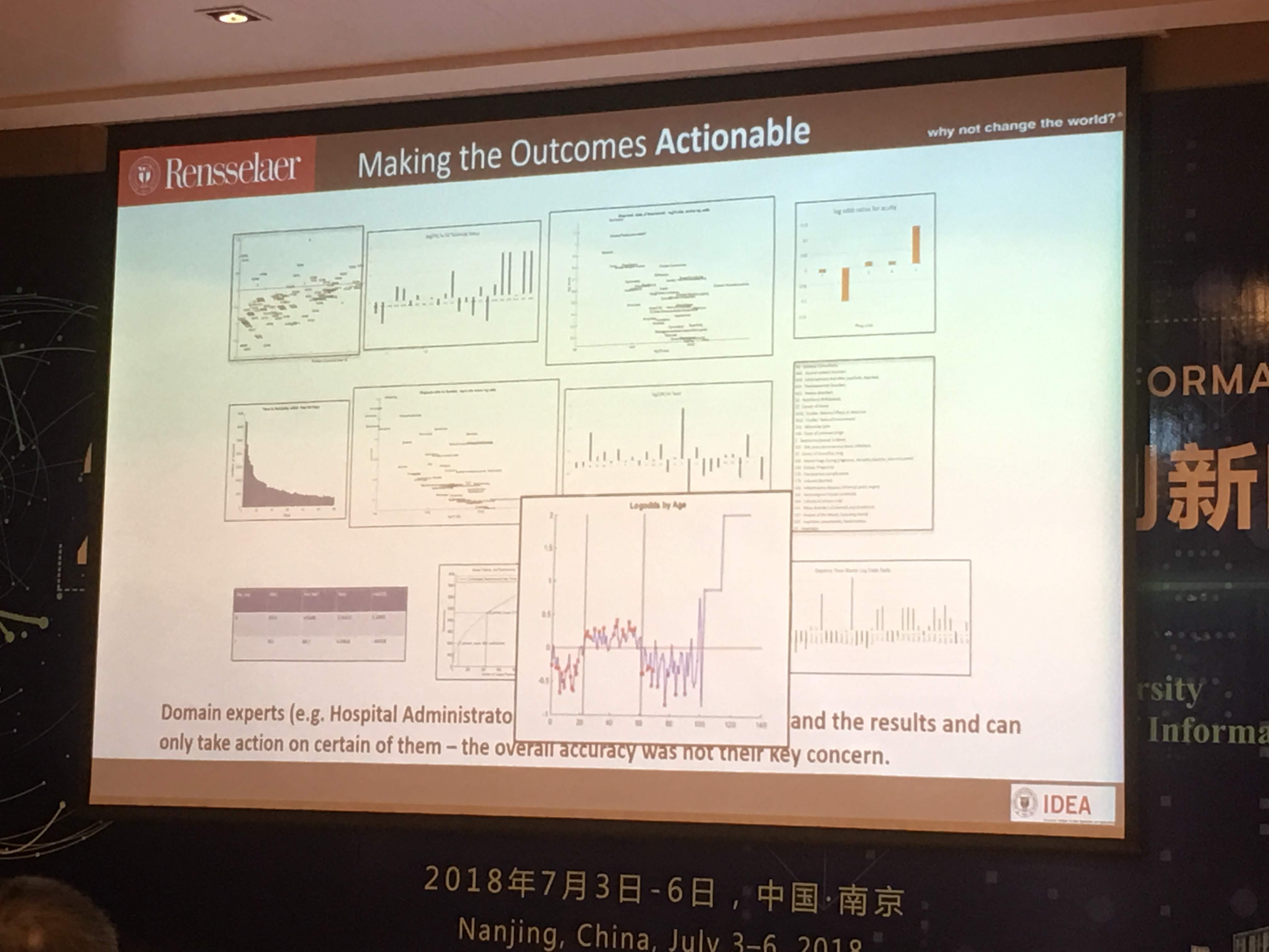 他说,许多人跑模型,跑出来一个比别人都高的准确率,于是就觉得任务完成了。他自己做健康信息研究,通过各种特征判定病人是否需要住院治疗。很容易就可以构建一个模型,获得很好的分类效果。