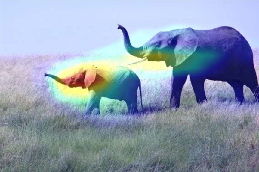 显然,在机器重点关注的区域里,象的鼻子和耳朵占了最大的决策比重。