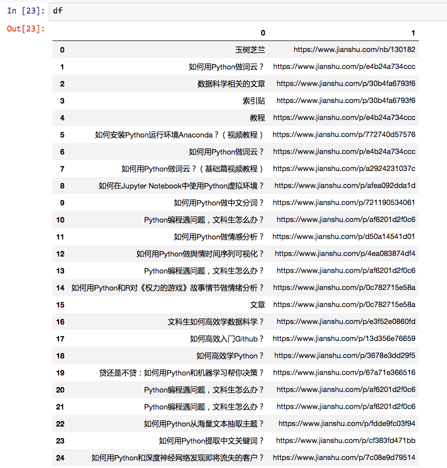 下面我们调用pandas,把字典变成数据框,以利于分析。