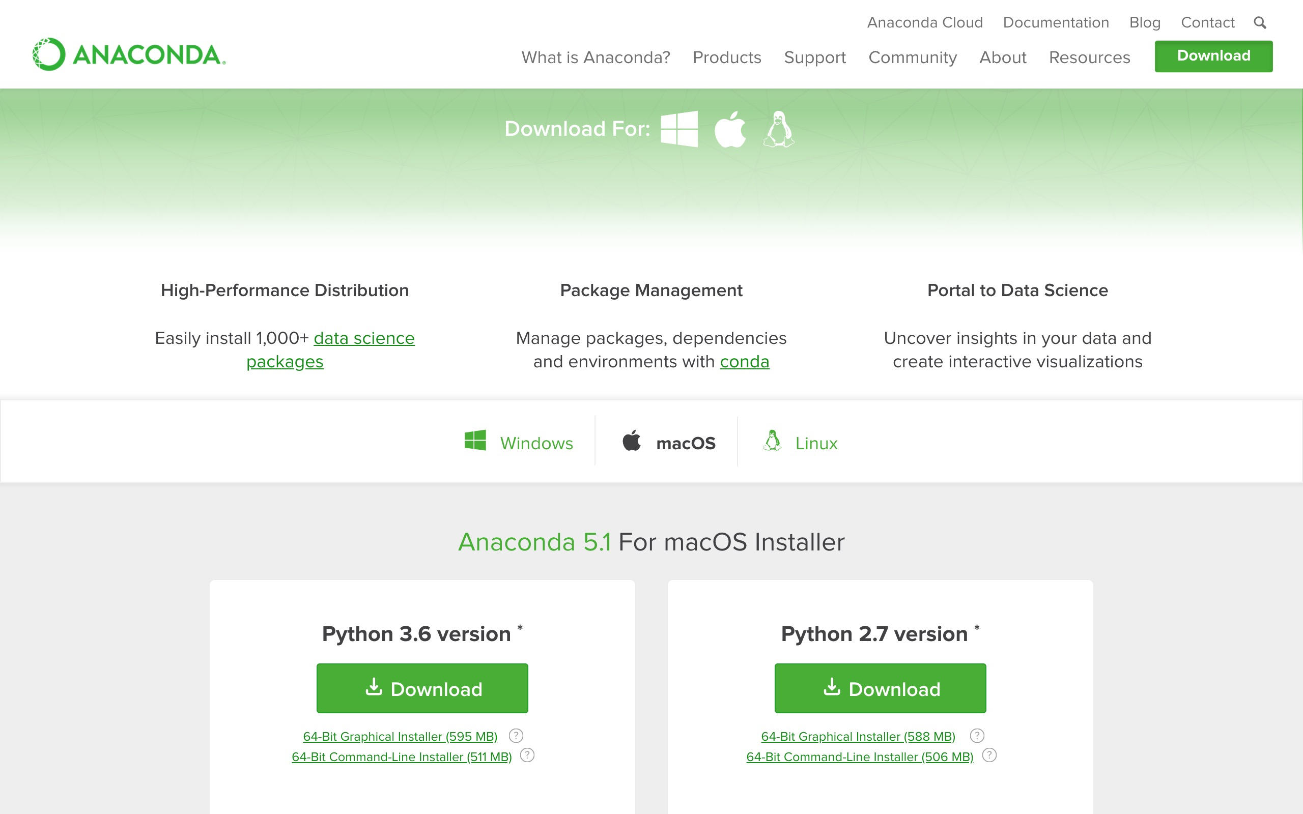 请到这个网址 下载最新版的Anaconda。下拉页面,找到下载位置。根据你目前使用的系统,网站会自动推荐给你适合的版本下载。我使用的是macOS,下载文件格式为pkg。