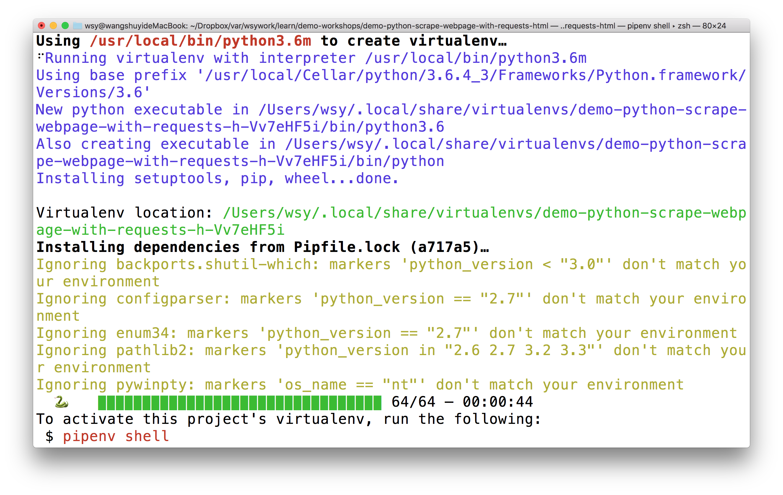 pipenv 工具会依照Pipfile,自动为我们安装所需要的全部依赖软件包。