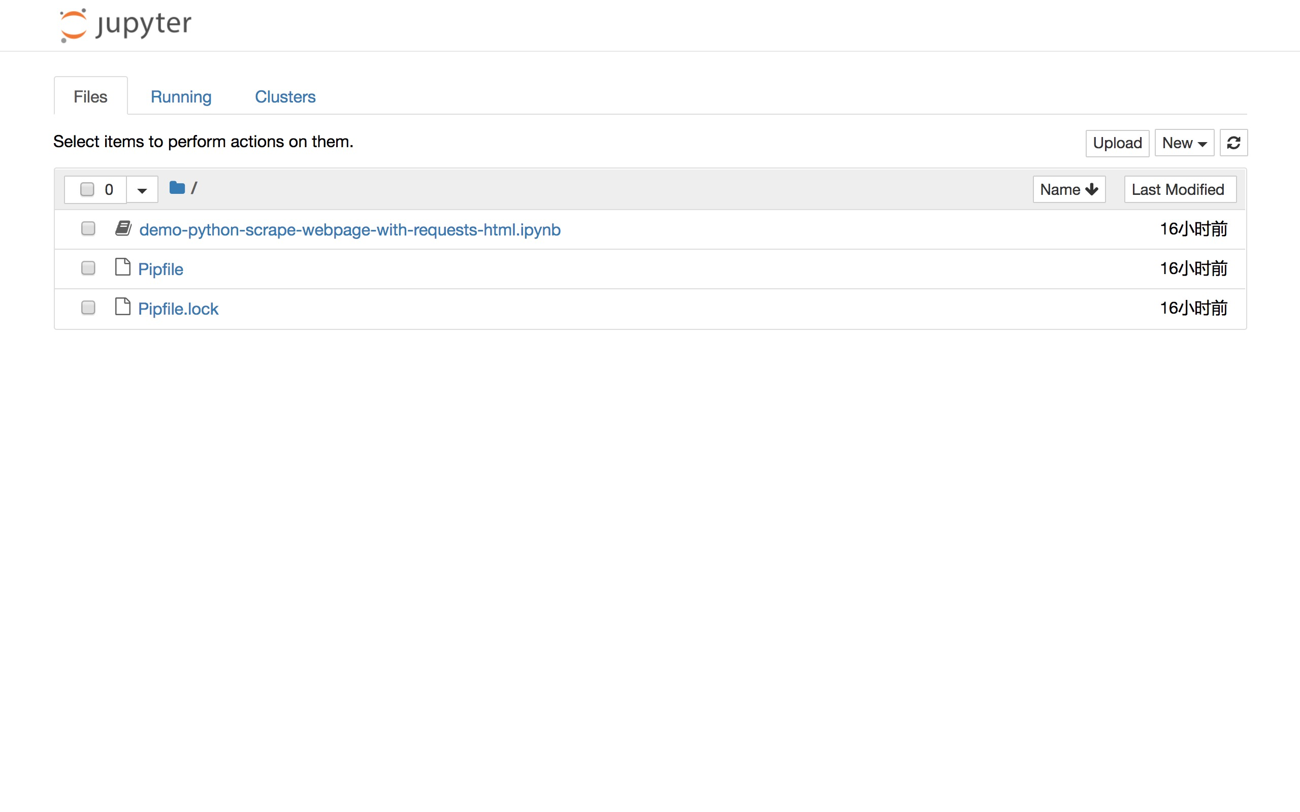 这样就进入到了Jupyter笔记本环境。我们新建一个Python 2笔记本。