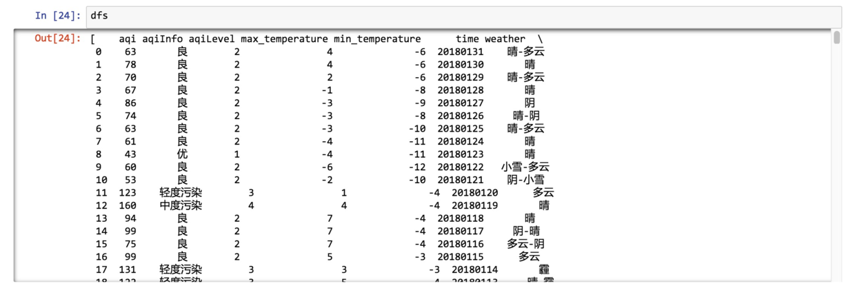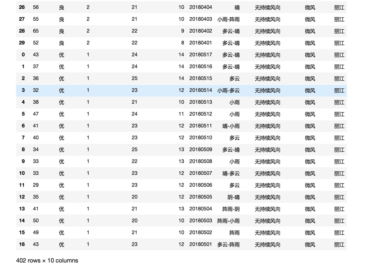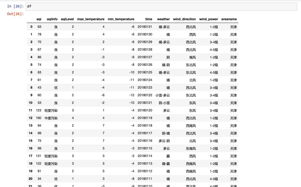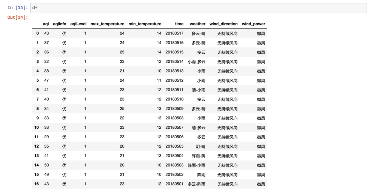 我们把csv数据存储到了数据框变量df。下面显示一下数据读取效果。