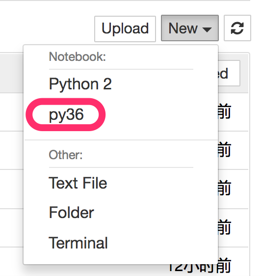 但是,我建议的方法,是回到主界面下,新建一个新的空白 Python 3 笔记本(显示名称为 py36 的那个)。