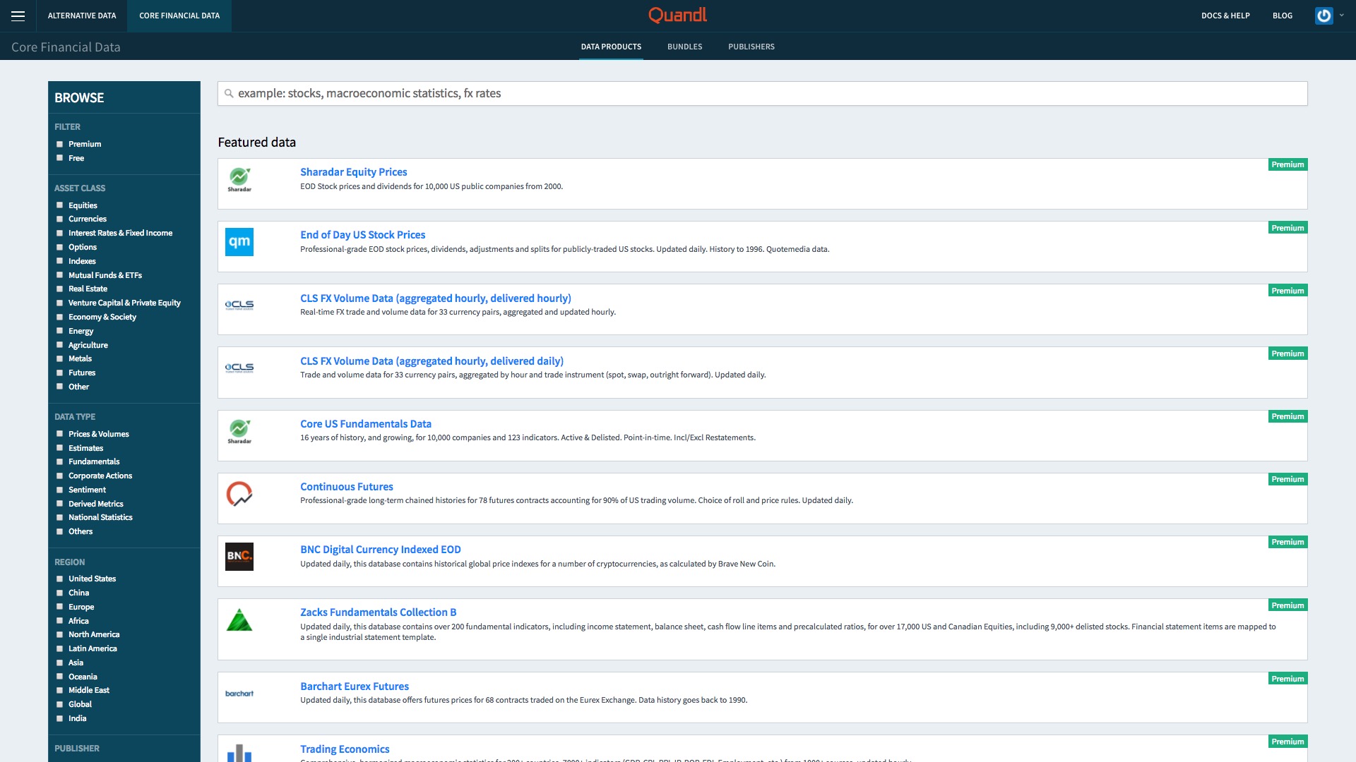 不要高兴得太早。仔细看数据集合右侧的标签,第一页里基本上都是“Premium”(只限会员),只有付费用户才能使用的。