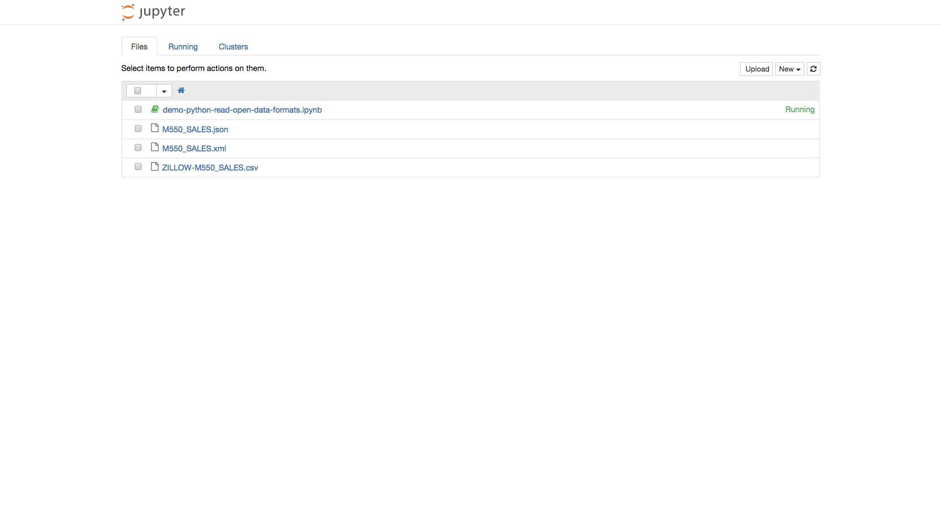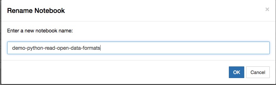 点击左上角笔记本名称,修改为有意义的笔记本名“demo-python-read-open-data-formats”。