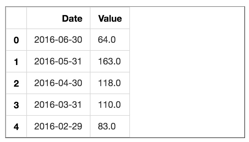 - 把列名变成小写的“date”和“value”;
