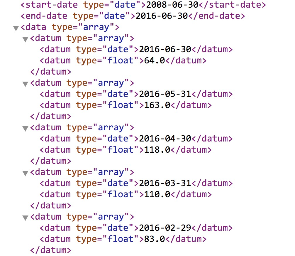 可以看到,Quandl提供了我们4种格式的数据,分别是