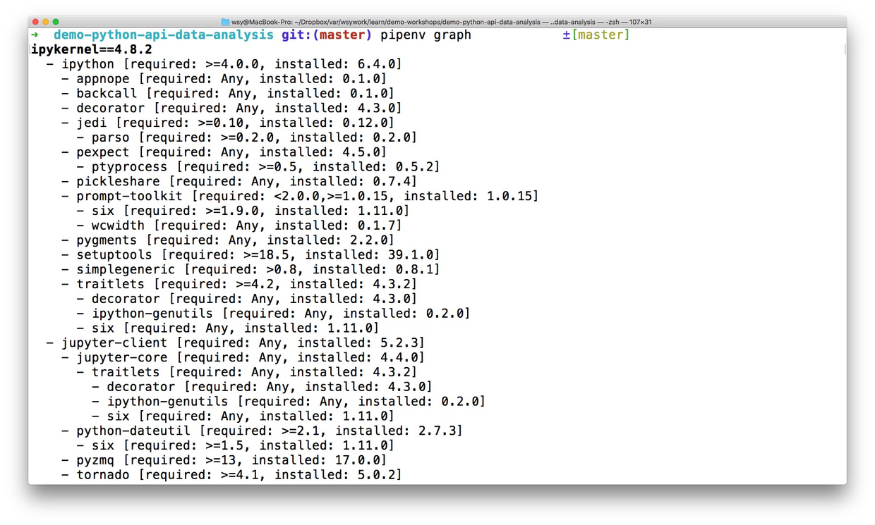 仅举一例,用 pipenv ,你可以用一条命令,查看当前项目软件包之间的依赖关系。