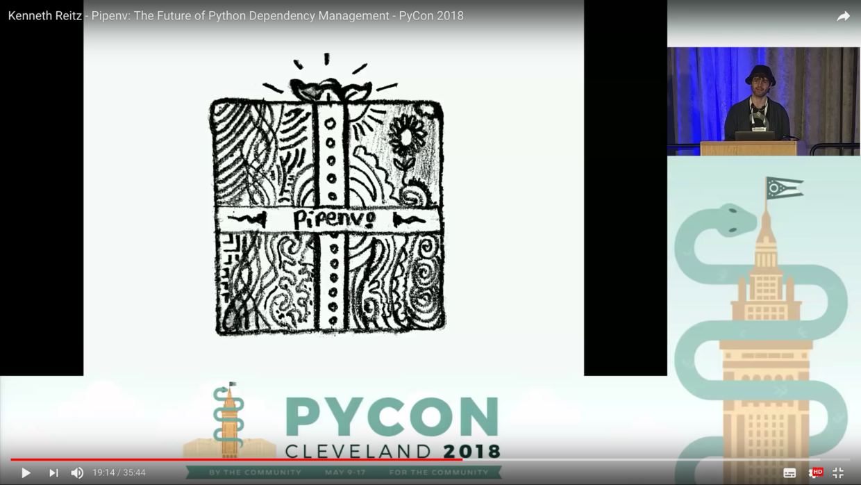 如果你对 pipenv 感兴趣,想了解它的特性、演进过程,请点击这个链接(http://t.cn/R1cYQSU),查看 PyCon 2018 大会上 Kenneth Reitz 的讲解。