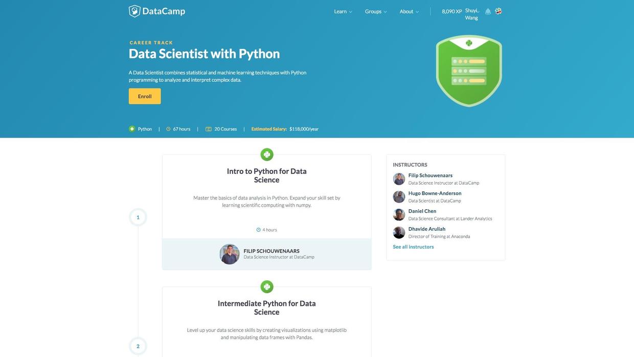 两年之后,Datacamp已经迭代得更为强大。你可以打开首页的Data Scientist with Python这个学习路径,查看其中已经提供的20门课程。