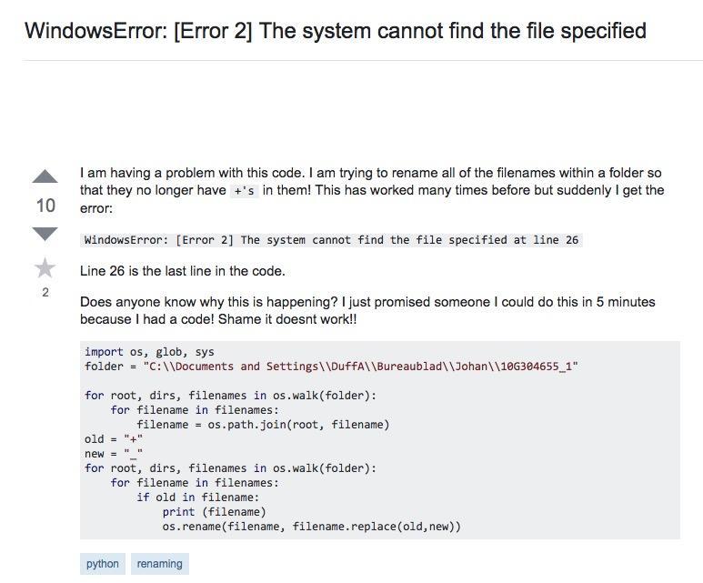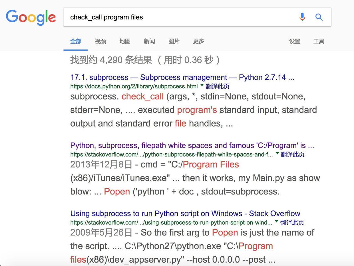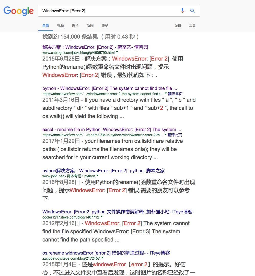 这时候,就该搜索引擎出场了。我们搜索“WindowsError: [Error 2] ”,结果如下: