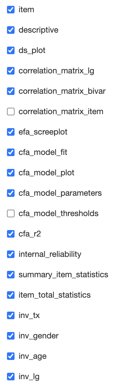 This function opens a Shiny web page where you can click/unclick sections you’d like to include/exclude in the report (see descriptions below). It also renders one report for the specified measure.