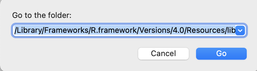 Alternatively, this Excel file is downloaded along with the mrautomatr package. You can also find its file path on your computer by running system.file("templates", "input_template.xlsx", package = "mrautomatr") in R. Copy the file path. If you are a Mac user, go to your Finder and hit Go - Go to Folder in your toolbar, and paste the path there and hit Go. Then copy and paste the excel file somewhere in your computer (e.g., a folder called Measurement report/template).
