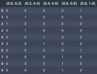 Categories (5, interval[float64, right]): [(0.0, 0.2] < (0.2, 0.4] < (0.4, 0.6] < (0.6, 0.8] < (0.8, 1.0]]