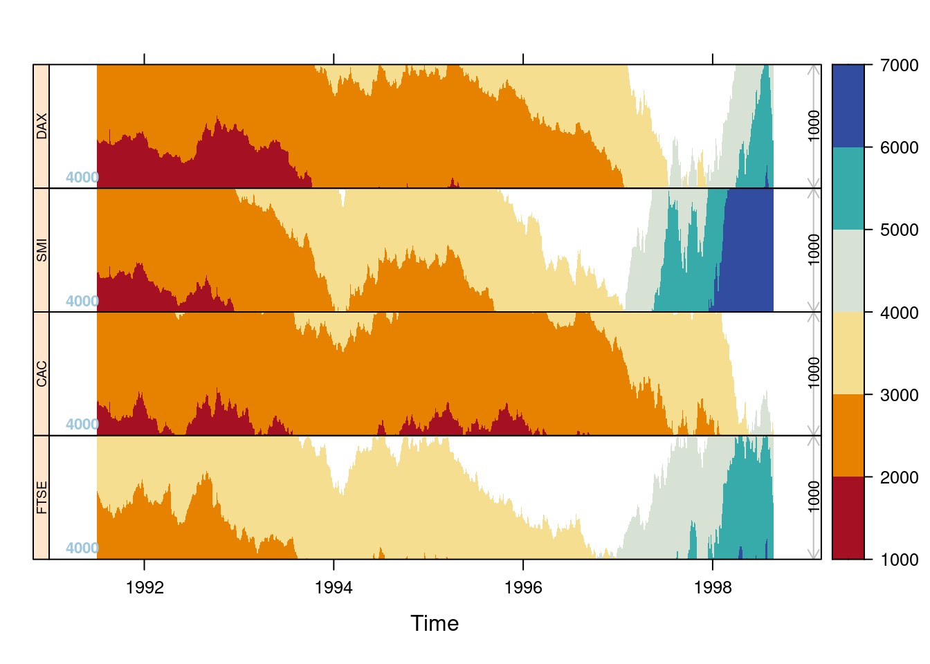 horizonplot(EuStockMarkets,